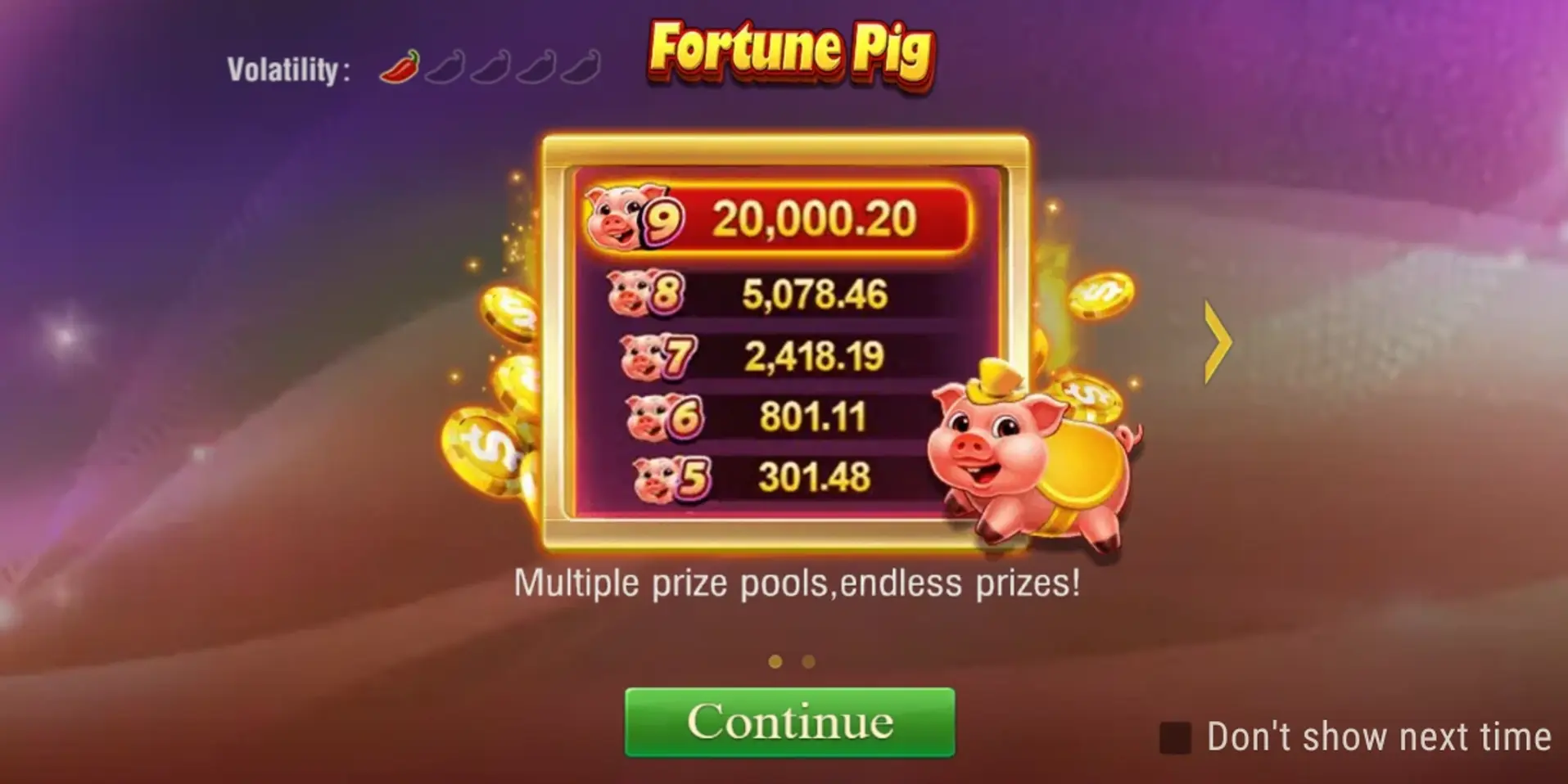 Fortune Pig has a progressive jackpot feature. Collecting a specific number of pig symbols triggers the jackpot, allowing you to win massive rewards. The more pigs you collect, the greater the jackpot!