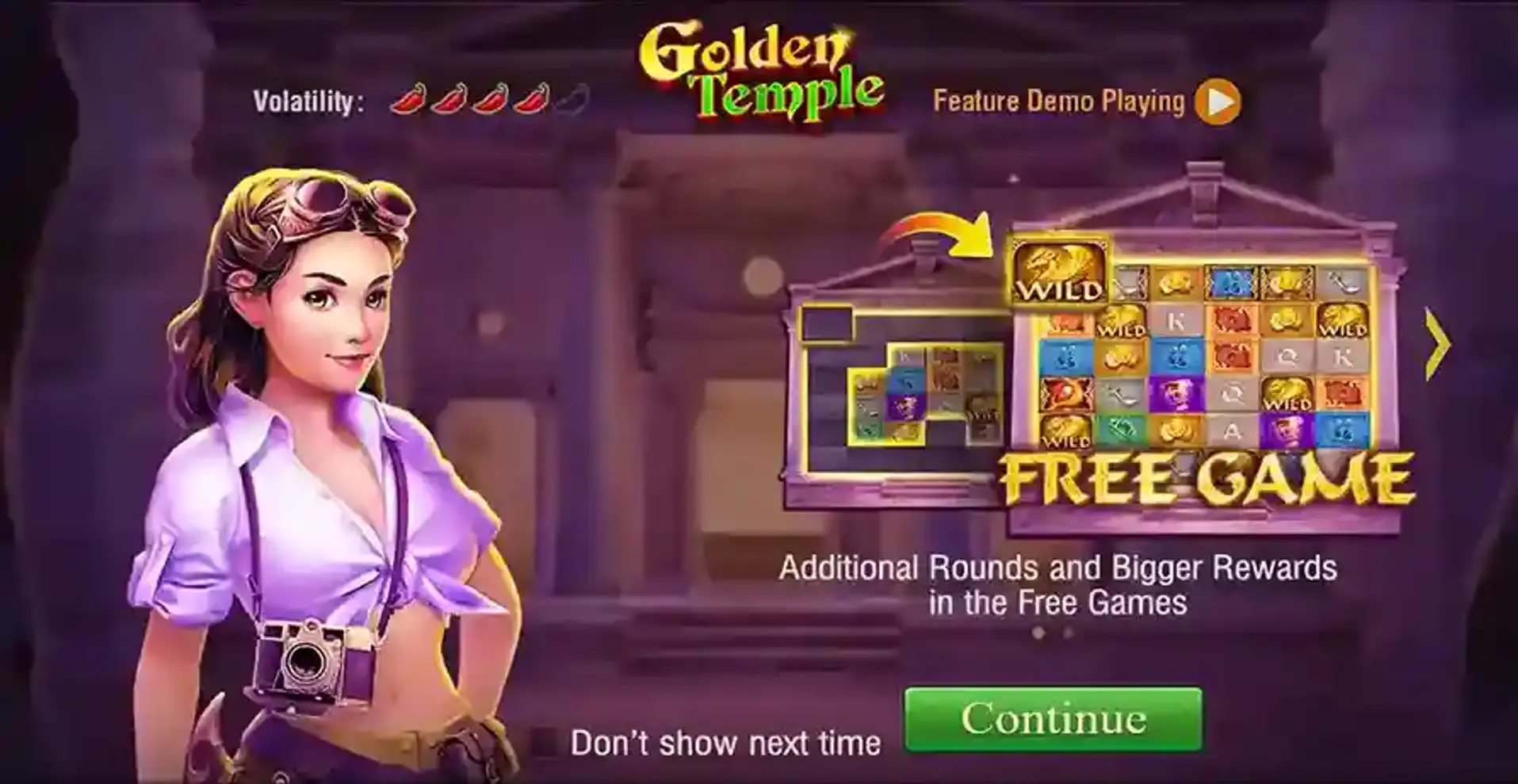 The wild symbol can replace all other symbols but doesn't appear randomly. Instead, it converts from golden symbols after they form a winning combination and are eliminated. Each wild symbol shows a number representing its usage count. If the number is 2 or more, it stays on the board after being part of a win, with its count decreasing by 1 each time. If the number is 1, the wild symbol will be removed after contributing to a win. This feature increases the chances of winning with each cascade. To understand this feature more try playing the Golden Temple Demo version which is also available at BJ88 Pinas or BJ88 Philippines,