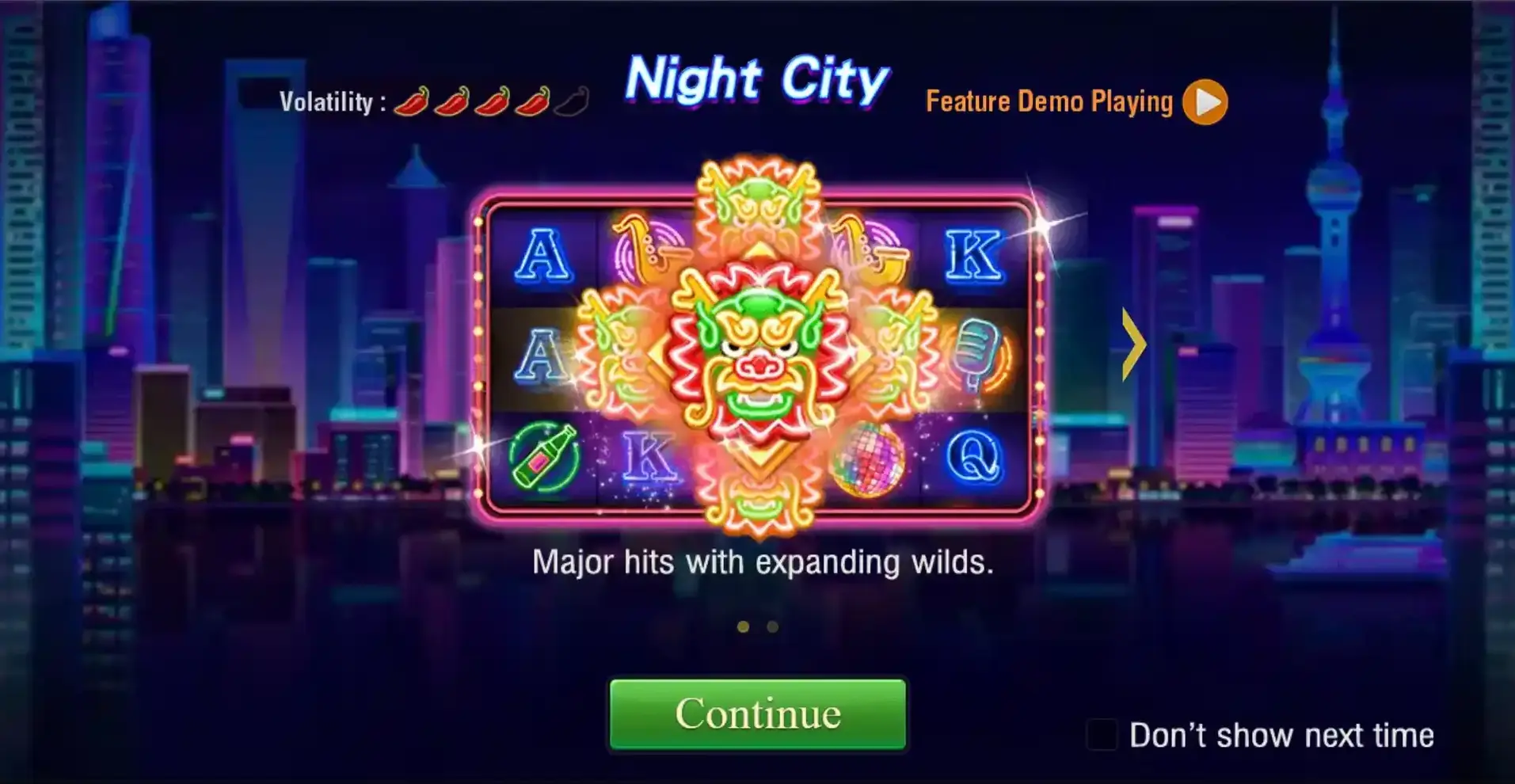 Night City introduces Party Night Game expanding wilds as a key feature. The wild symbols appear on reels 1, 2, and 3 during the night city game. These wilds can replace all symbols except for the scatter and wild symbols in BJ8 PH and when a special wild appears in the night city game, it expands both vertically and horizontally, covering additional positions on the reels. This night city creates more chances for winning combinations and can lead to big payouts. Keep an eye out for the expanding wilds as they can result in major hits during your gameplay.