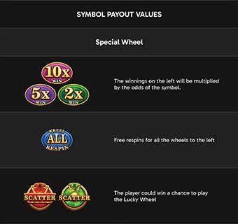 Extra Opportunities: Free respins for all wheels to the left, boosting chances for more wins.
